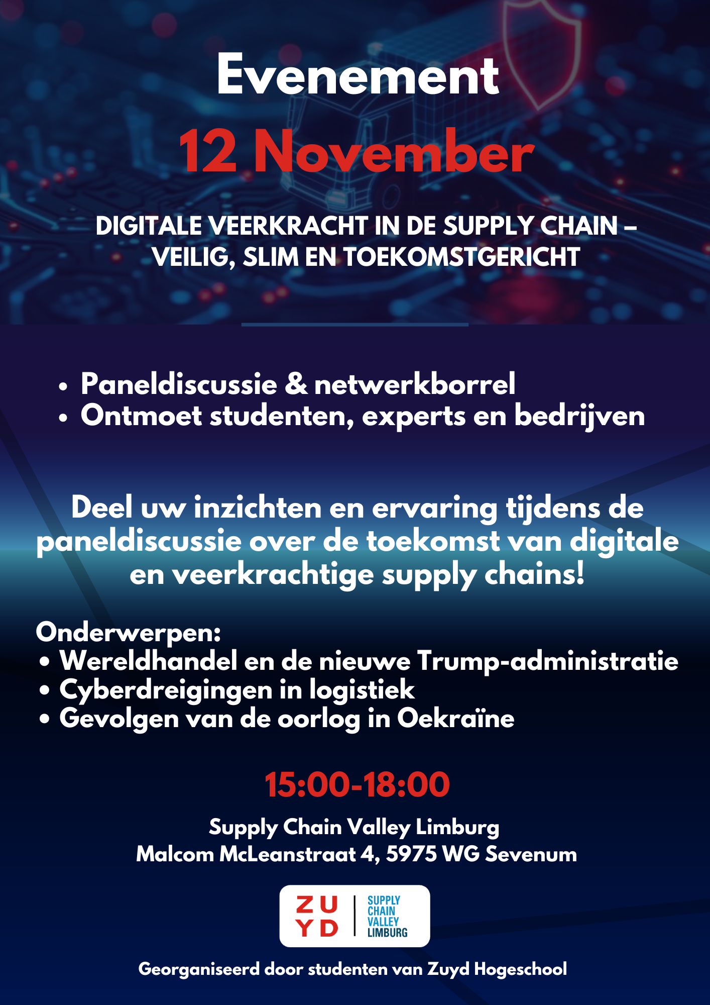 Wij nodigen je van harte uit voor onze interactieve paneldiscussie en netwerkborrel op 12 november van 15:00 tot 18:00 uur bij Supply Chain Valley Limburg in Sevenum.